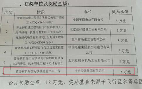 在膠東新機(jī)場(chǎng)指揮部開展的百日攻堅(jiān)創(chuàng)優(yōu)的工作中,建筑七公司孫兆岐施工的國(guó)際快件監(jiān)管中心項(xiàng)目,充分發(fā)揮積極性、主動(dòng)性和創(chuàng)造性,不斷加大質(zhì)量、安全、環(huán)保等方面的有效管控,在新機(jī)場(chǎng)指揮部組織的檢查考核評(píng)比中,獲得第六名好成績(jī)和2萬元的獎(jiǎng)勵(lì),為公司爭(zhēng)得了榮譽(yù),樹立了公司良好的社會(huì)形象。為此給予該項(xiàng)目公司內(nèi)通報(bào)表揚(yáng),希望繼續(xù)發(fā)揚(yáng)成績(jī),再接再厲,再創(chuàng)佳績(jī),同時(shí),其他各單位各項(xiàng)目部要學(xué)習(xí)先進(jìn),積極參與各項(xiàng)活動(dòng),不斷加強(qiáng)項(xiàng)目各項(xiàng)管理,為公司爭(zhēng)取更多更大的榮譽(yù),展現(xiàn)企業(yè)風(fēng)采。